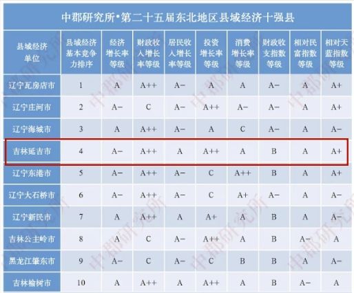 11月11日,全國(guó)縣域經(jīng)濟(jì)專(zhuān)業(yè)研究機(jī)構(gòu)——中郡研究所完成并發(fā)布了《第二十五屆縣域經(jīng)濟(jì)與縣域發(fā)展研究報(bào)告》,揭曉第二十五屆東北地區(qū)縣域經(jīng)濟(jì)基本競(jìng)爭(zhēng)力十強(qiáng)縣。其中,吉林省延吉市連續(xù)25年持續(xù)位居?xùn)|北十強(qiáng)縣,排名始終位列吉林第一。