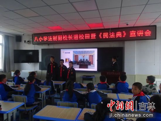 中新網(wǎng)吉林新聞6月1日電 (譚偉旗 孟鴿)為加大《中華人民共和國民法典》宣傳普及力度,營造尊法、學(xué)法、守法、用法的良好校園氛圍,近日,敦化基層林區(qū)法院民事審判團(tuán)隊(duì)法官干警走進(jìn)敦化市第八小學(xué),深入課堂為師生們開展了一場《民法典》知識宣傳教育主題講座。