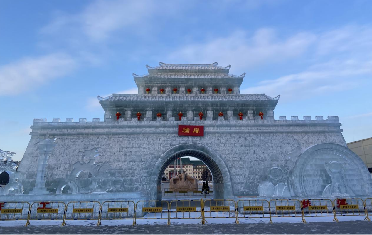 當來自深圳的大學(xué)生張濤宇走出地鐵站來到長春市文化廣場,就被眼前恢弘的“瑞扉之門”所震撼,他摘下冒著熱氣的手套,輕輕觸摸冰面,感受這座陌生城市豐富的歷史文化底蘊。