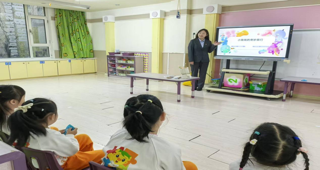 考慮到幼兒注意力特點(diǎn),主講人王琳還設(shè)計(jì)了“錢幣小法官”游戲:她展示不同場景卡片,比如“小朋友幫媽媽保管手機(jī),不隨便點(diǎn)開付款鏈接”“陌生人要借手機(jī)轉(zhuǎn)賬,小朋友說‘要問爸爸媽媽’”,讓孩子們判斷“做得對(duì)不對(duì)”。孩子們積極舉手,有的站起來模仿卡片里的小朋友說話,有的拉著同伴一起討論,原本抽象的安全規(guī)則,變成了能判斷、能模仿的具體行為,現(xiàn)場笑聲與回答聲此起彼伏,連老師都忍不住加入互動(dòng)。