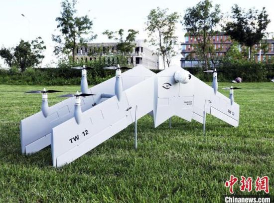 由中國科學(xué)院長春光機(jī)所自主研發(fā)制造的雙飛翼垂直起降固定翼無人機(jī)。(資料圖)長春長光博翔無人機(jī)有限公司供圖