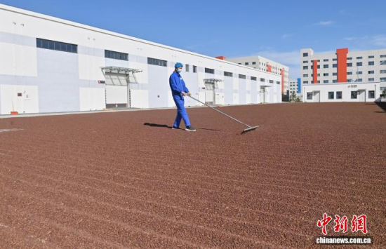在吉林梅河口,工人在晾曬松子。(資料圖) 張瑤 攝