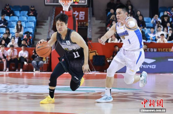 3月23日晚,吉林長春,吉林隊姜偉澤(左一)持球推進!≈行律缬浾 張瑤 攝