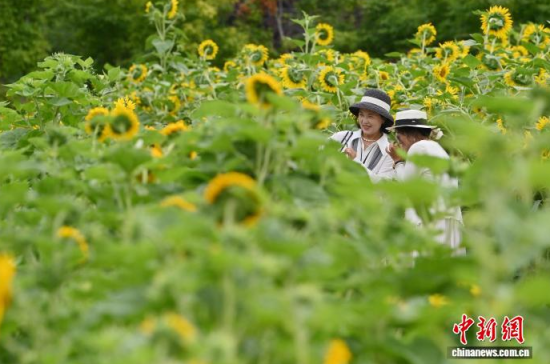 吉林長(zhǎng)春:向日葵盛開吸引游客