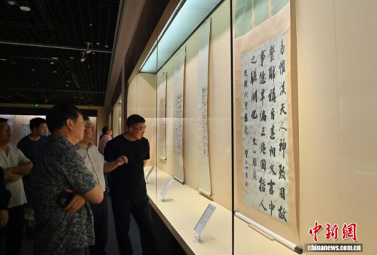 9月10日,參觀者在位于吉林省長春市的吉林省博物院參觀董其昌的《戲鴻堂雜書冊》。近日,“吉林省博物院藏明清書法精品展”在長春開展,此次展覽遴選該院所藏明清書法精品五十余件,均為珍貴文物。展覽不僅系統(tǒng)梳理了明清兩代書法藝術(shù)的發(fā)展脈絡(luò),更是對中華優(yōu)秀傳統(tǒng)文化的傳承與弘揚(yáng)。中新社記者 張瑤 攝