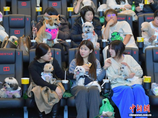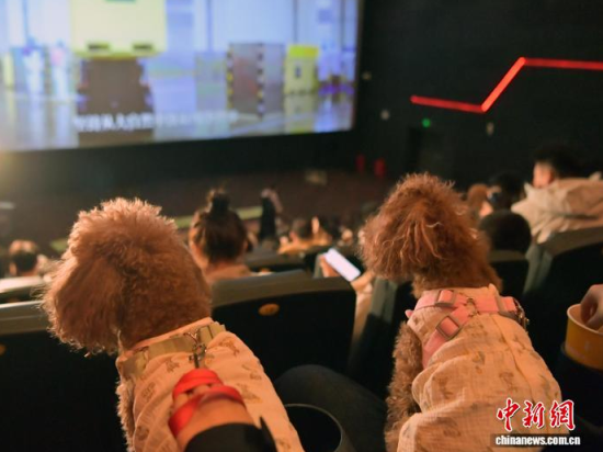 12月5日晚,吉林長春,兩只“汪星人”在觀影。近日,吉林長春一家影院創(chuàng)新推出“寵物陪伴觀影”特色專場,吸引不少市民帶著愛寵一同走進電影院,共享觀影樂趣。為提升“人寵共處”的體驗,影院專門對場內光線與音量進行了適應性調整,并提前備好寵物坐墊、尿不濕等應急物品,力求為寵物和主人打造一個舒適、安心的觀影環(huán)境。中新社記者 張瑤 攝
