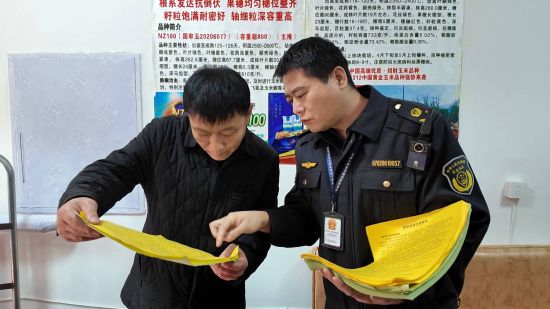 檢查過程中,市農(nóng)業(yè)農(nóng)村局的執(zhí)法人員還同步開展普法宣傳,指導農(nóng)戶掃碼核驗、科學選購,提升識假辨假與維權能力。對備案不規(guī)范、資質不全、公示不到位等問題,現(xiàn)場下達責令整改通知書,限期整改、跟蹤銷號。
