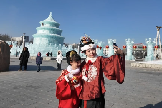 長春打造“藍冰”景觀 市民打卡體驗“冰川世界”