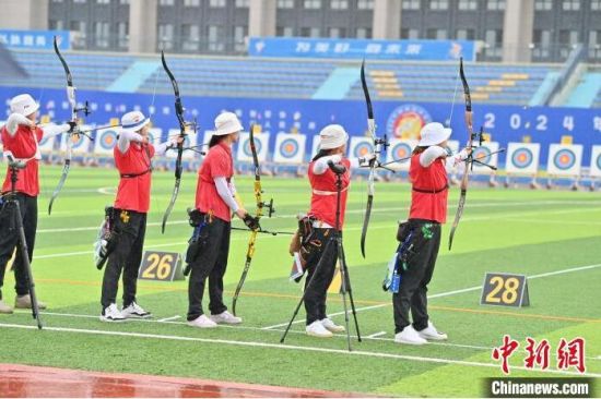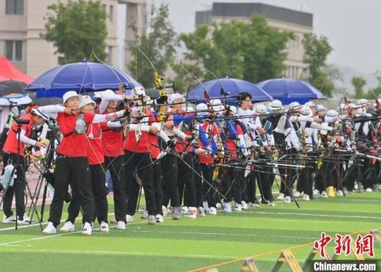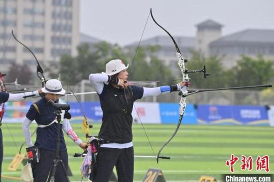 7月3日,吉林遼源,參賽選手參加女子個人70米輪賽。 當(dāng)天,2024年全國射箭巡回賽暨全國射箭分站賽第二站在雨中開弓。來自全國各地的258名運(yùn)動員在男子反曲弓個人、女子反曲弓個人、男子反曲弓團(tuán)體、女子反曲弓團(tuán)體、反曲弓混合團(tuán)體5個競賽項目上一較高低。(中新社記者 張瑤 攝)