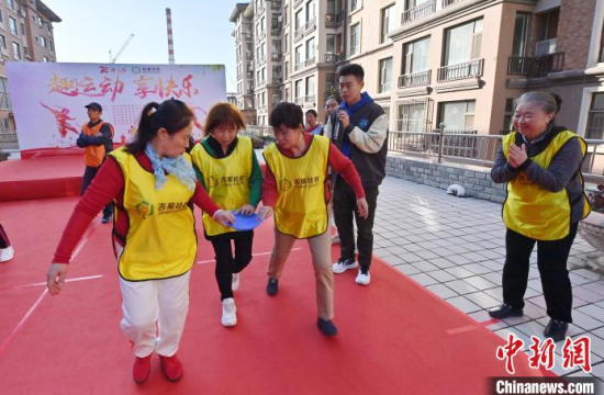 10月11日,在長春市吉星社區(qū),近百名老年人參加重陽節(jié)趣味運動會。中新社記者 張瑤 攝