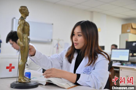 10月23日,吉林長春,林玉花在練習針灸。來自泰國的林玉花是長春中醫(yī)藥大學中醫(yī)內(nèi)科學的研究生,經(jīng)過一年多的深造,她越發(fā)愛上博大精深的中醫(yī)和中國傳統(tǒng)文化。林玉花說,她希望把在中國學到的中醫(yī)技藝帶回家,將來開一家中醫(yī)館。中新社記者 張瑤 攝