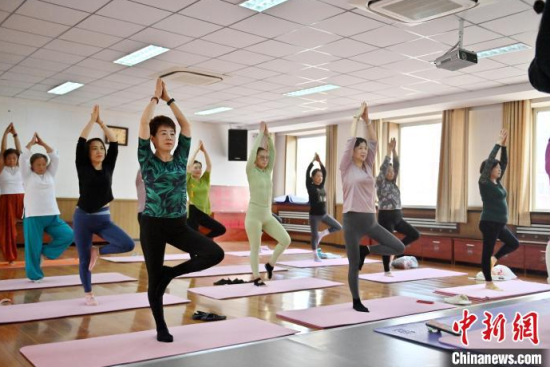 10月24日,在位于吉林長春的吉林省老年大學(xué),老年人在練習(xí)瑜伽。近來,越來越多老年人在運動中煥新生活,瑜伽也不再是年輕人的專屬。在老年人的眼中,瑜伽鍛煉了體態(tài)和精神面貌,讓他們看起來“越來越年輕”。中新社記者 張瑤 攝
