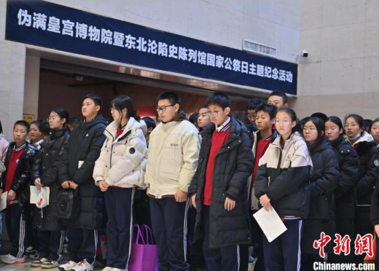 12月13日,在位于吉林長春的東北淪陷史陳列館,民眾在向英烈名錄獻花。當天,偽滿皇宮博物院暨東北淪陷史陳列館聯(lián)合社會各界人士,共同舉辦“千秋忠烈 百世遺芳”南京大屠殺死難者國家公祭日悼念活動,沉痛悼念南京大屠殺死難同胞以及在抗日戰(zhàn)爭中獻出生命的革命英烈。中新社記者 張瑤 攝