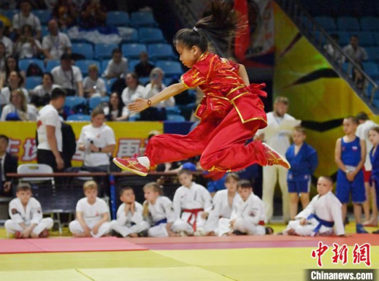 6月15日,“青春共武·中俄青少年武術交流活動” 在長春市體育館拉開帷幕。賽場上,來自俄羅斯柔術協(xié)會的140 名成員與長春市業(yè)余體育運動學校的 100 名學生輪番登臺,展開激烈競技。圖為俄羅斯青少年進行柔術比賽。中新社記者 張瑤 攝