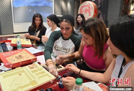 6月24日,吉林長春,埃及青年體驗活字印刷術。當天,來自美國、埃及、印度尼西亞等國家的青年在長春體驗泥塑、活字印刷術,參觀一汽紅旗文化展館,近距離感受中國文化的魅力。中新社記者 張瑤 攝