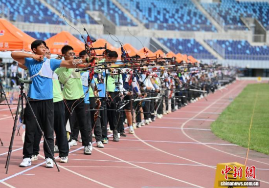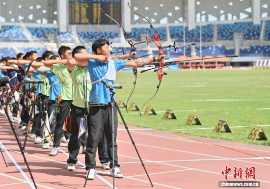 8月21日,吉林長(zhǎng)春,運(yùn)動(dòng)員參加比賽。 當(dāng)日,2025年全國(guó)射箭U16、U18錦標(biāo)賽在長(zhǎng)春開賽,中國(guó)各地96支射箭隊(duì)的721名運(yùn)動(dòng)員張弓搭箭,一較高下。 中新社記者 張瑤 攝