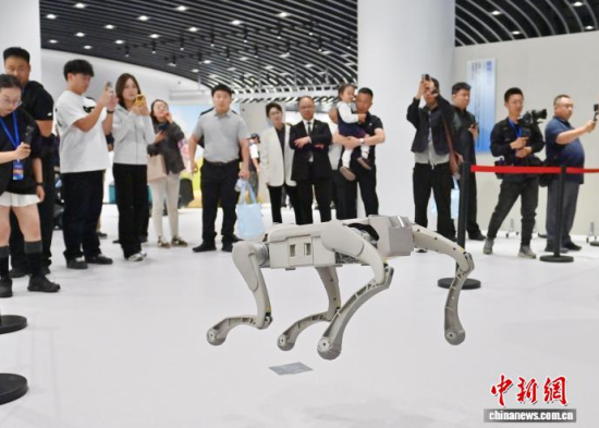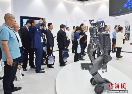 9月30日,吉林長春,參觀者觀看科技文旅機器人。當天,吉林省仿生機器人創(chuàng)新中心應(yīng)用示范基地于吉林省長春市揭牌,全國首家“仿生機器人MALL”也在同期開幕。該基地集展示、體驗、科普、銷售等功能于一體,致力于打造沉浸式科技消費新地標。中新社記者 張瑤 攝