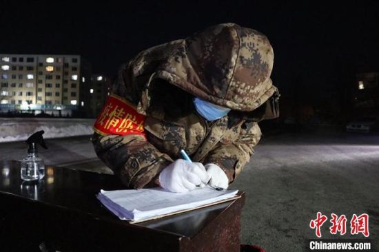 中新網通化1月28日電 (蒼雁 孫博妍)入夜的通化月光皎白,李曉東望著對面窗里亮起的燈,安心不少!澳鞘俏壹,就在卡點對面!痹诜酪咭痪駐守半個月,李曉東很惦記家里人。