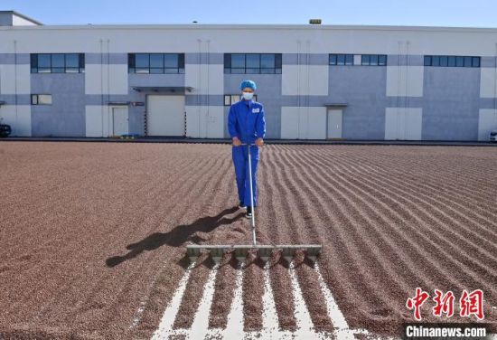 2023年9月13日,吉林梅河口,松子加工企業(yè)的工人在晾曬松子。(資料圖)中新社記者 張瑤 攝