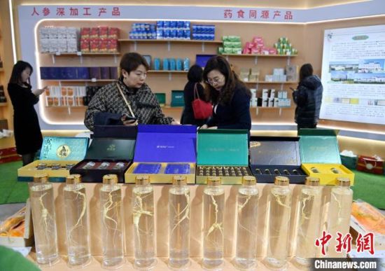 消費(fèi)者在2024長(zhǎng)春國(guó)際醫(yī)藥健康產(chǎn)業(yè)博覽會(huì)上選購(gòu)人參產(chǎn)品。張瑤 攝