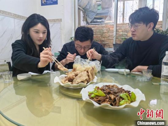 來自天津的游客趙瀟虹攜家人在吉林過年,一家人不僅品嘗鍋包肉,還對各餐館的鍋包肉進(jìn)行了對比!懊考也说奶攸c都不一樣,有的是酸甜口味占優(yōu),有的是肉片特別有嚼勁。”