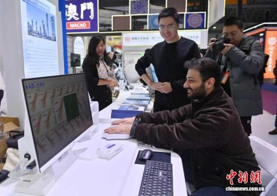 2025長春國際醫(yī)藥健康產(chǎn)業(yè)博覽會暨長白山人參產(chǎn)業(yè)高質(zhì)量發(fā)展大會上,外國觀眾正在體驗中醫(yī)經(jīng)絡(luò)檢測儀。張瑤 攝