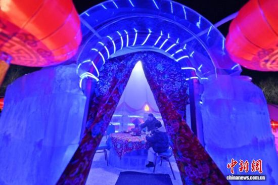 2月4日,在吉林長(zhǎng)春世界雕塑園內(nèi),一座晶瑩剔透的冰屋中熱氣繚繞,來自上海的游客圍坐在冰桌前,品嘗著沸騰的火鍋,親身體驗(yàn)“冰火兩重天”的奇妙感受。張瑤 攝